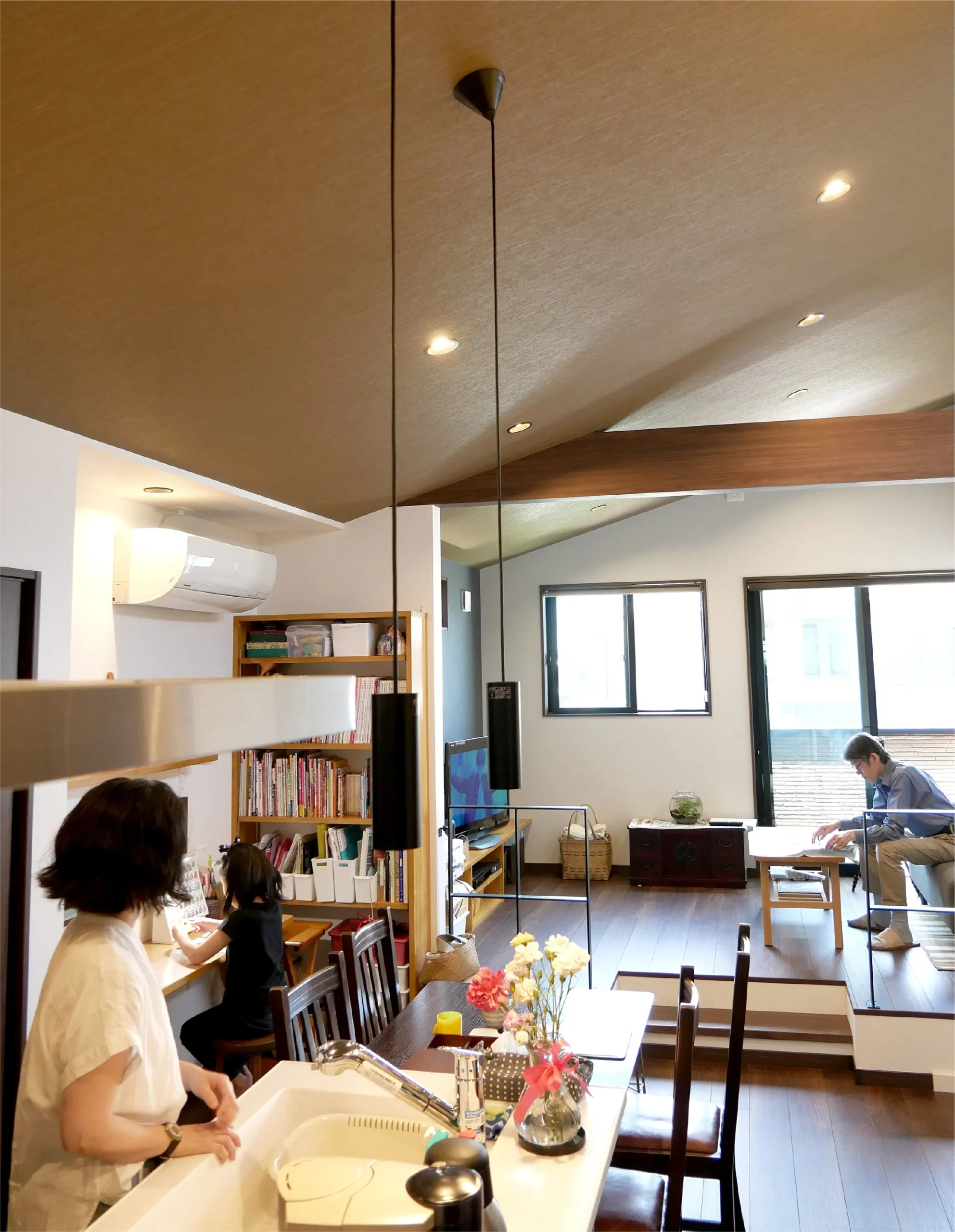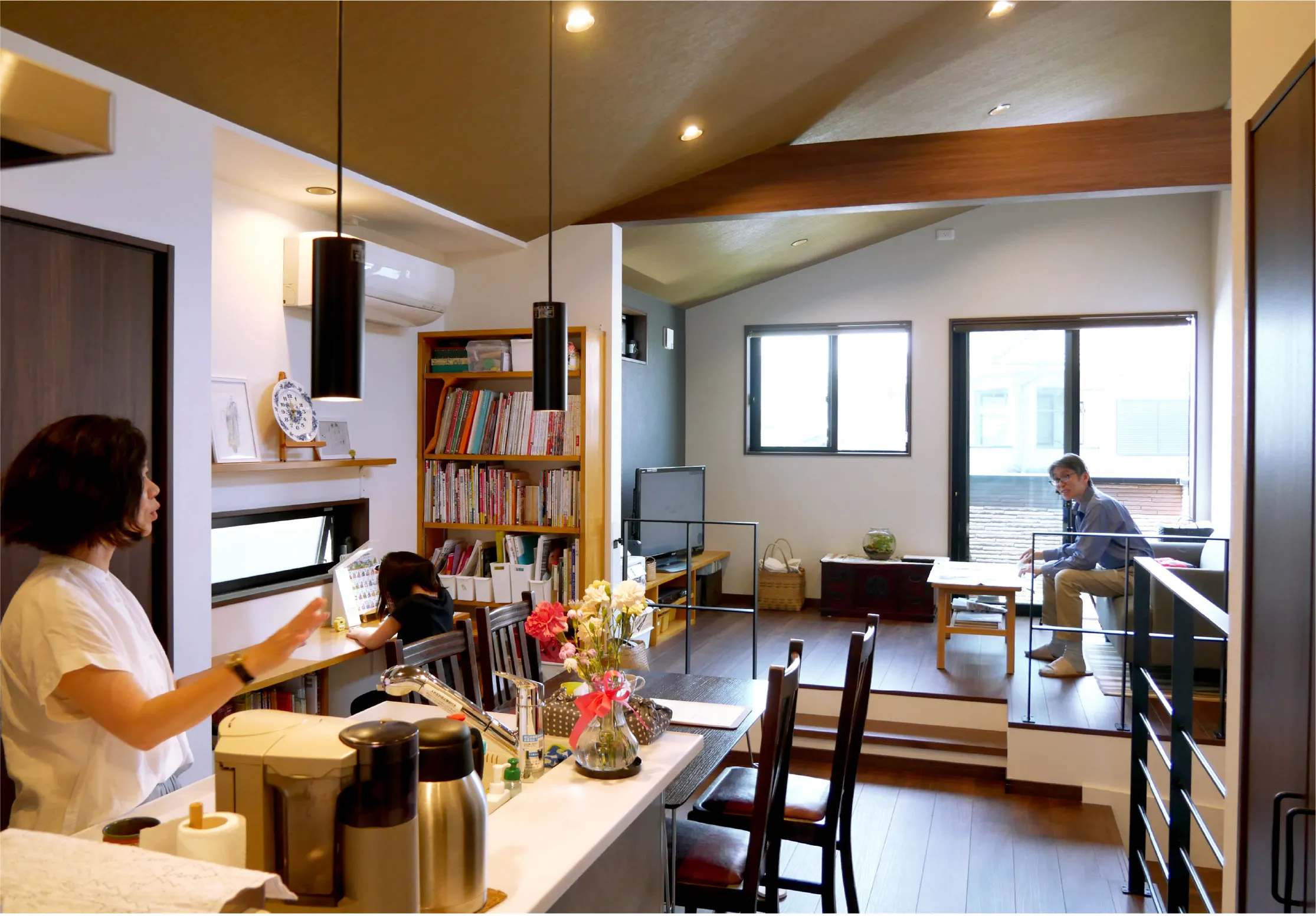 リビングに段差を設けて空間にメリハリをつけた