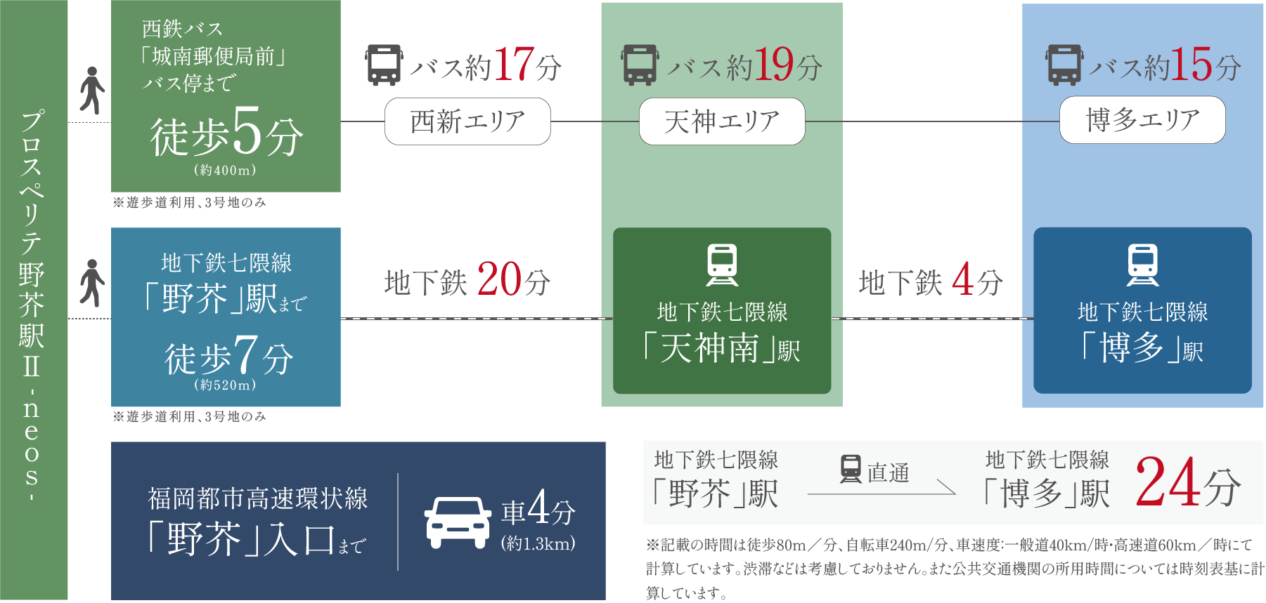 地下鉄七隈線「野芥駅」まで徒歩8分、天神博多まで直通