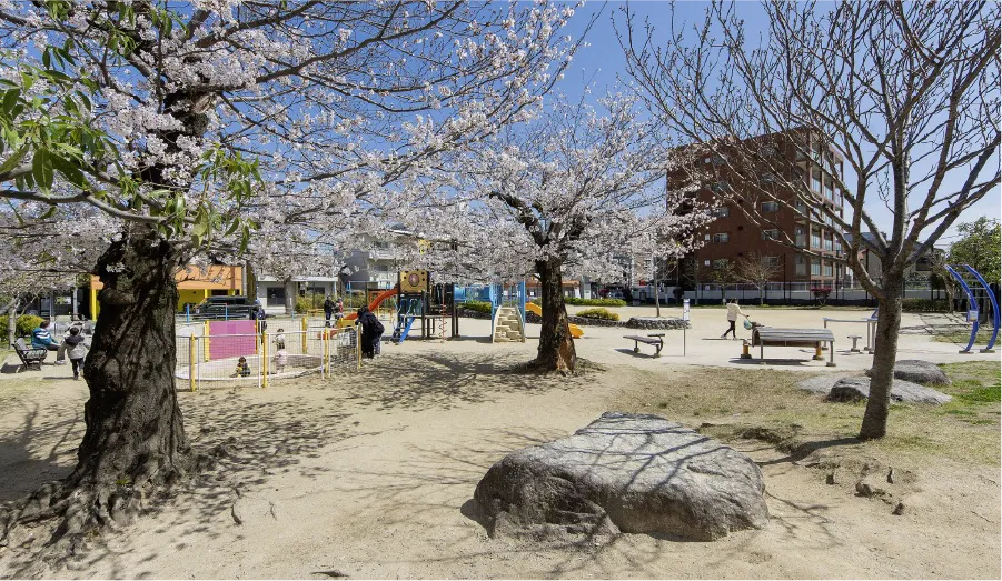 藤崎南公園へ徒歩2分、紅葉山公園へ徒歩4分と緑豊かな住環境