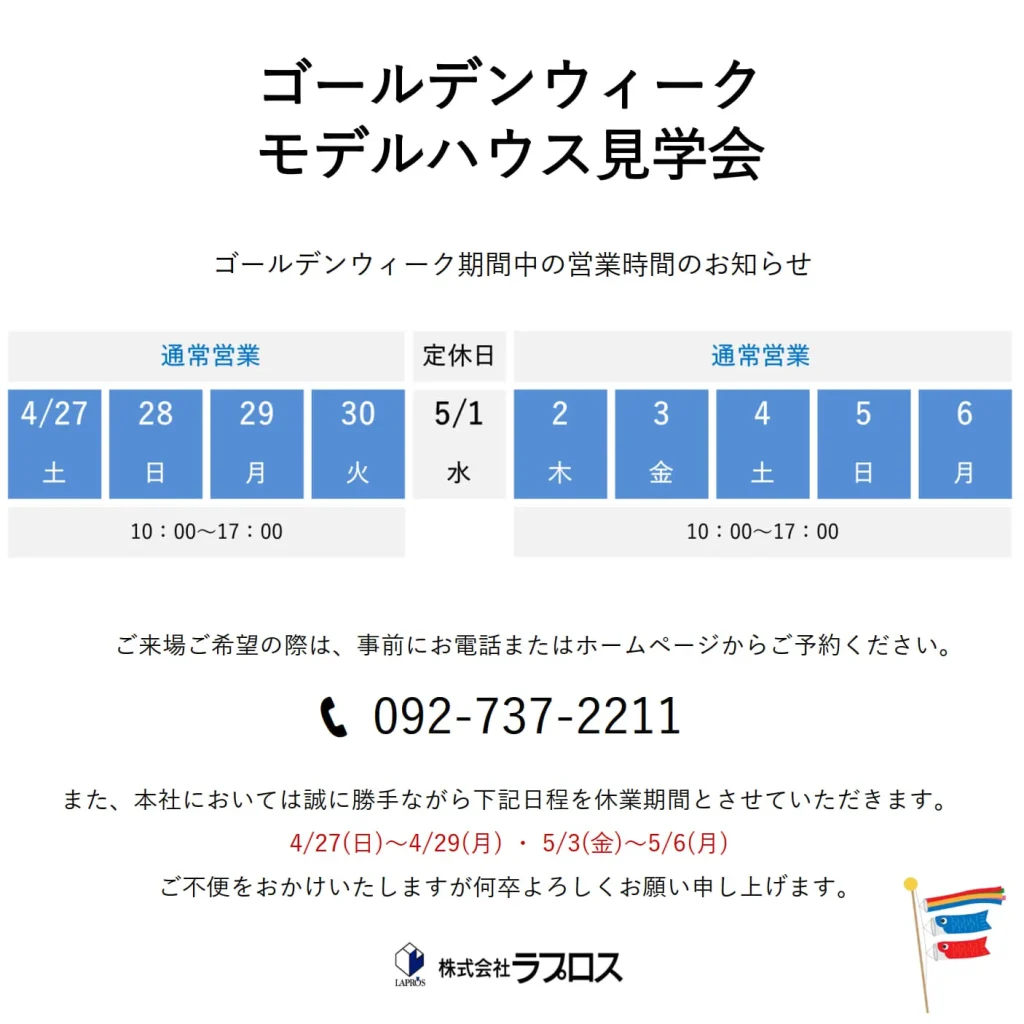 ゴールデンウィーク期間中の営業時間は以下の通りです。お電話・ホームページよりご予約の上、どうぞお気軽にお越しください。
